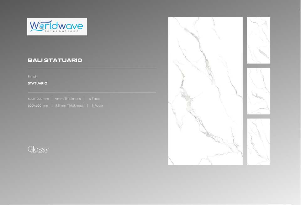 Export Quality 600x1200mm White Colour Tiles Grey Veins Glossy Statuario Carrara GVT PGVT Porcelain Vitrified Floor Wall Tiles