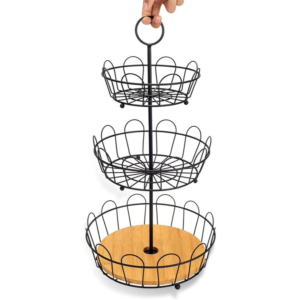 Export Quality Black Powder Coating Iron Wire Basket With Handle Custom Size for Kitchen Tabletop Storage Basket