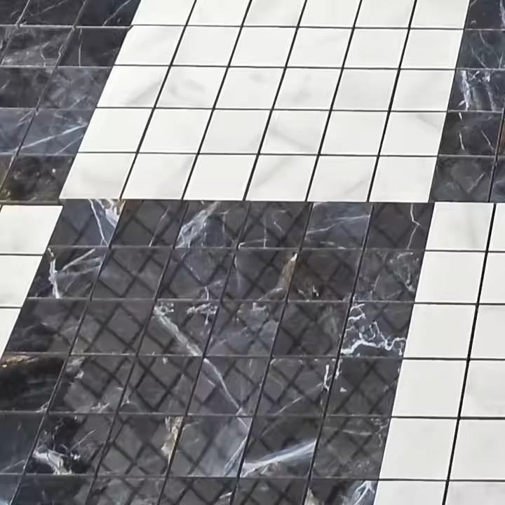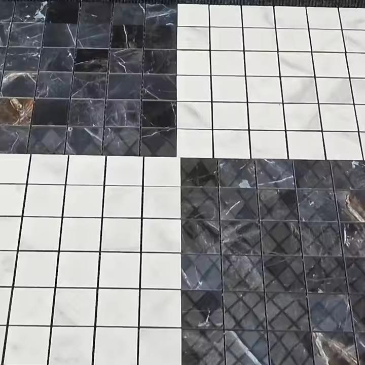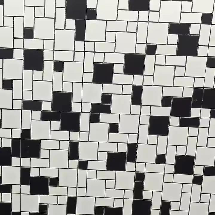Export Quality Cheap Price Black White BackSplash Porcelain Irregular High Gloss Mosaic Wall Floor Tiles 15x15 10x10
