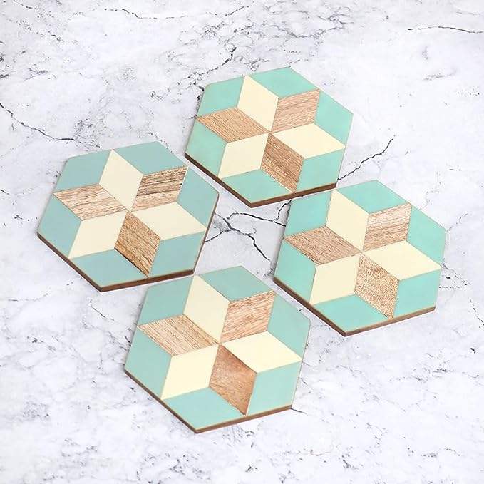 Export Quality Decorative Bone Inlay Coasters Set MDF Board and Resin Coaster Set Square by Indian Manufacturer