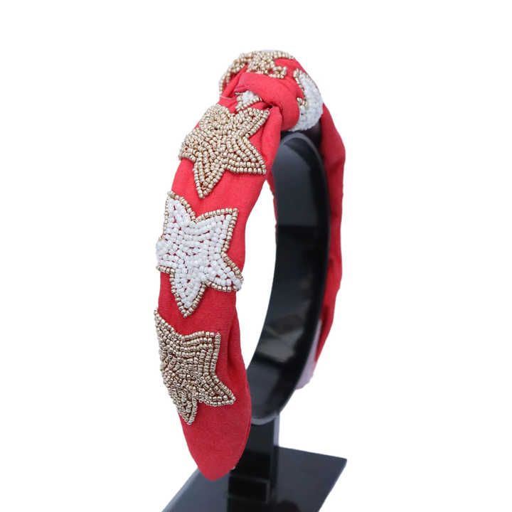 Export Quality Durable Red Star Beaded Headband Handmade Knot Hairband Boutique Luxury Fabric Hair Accessories Casual Festive