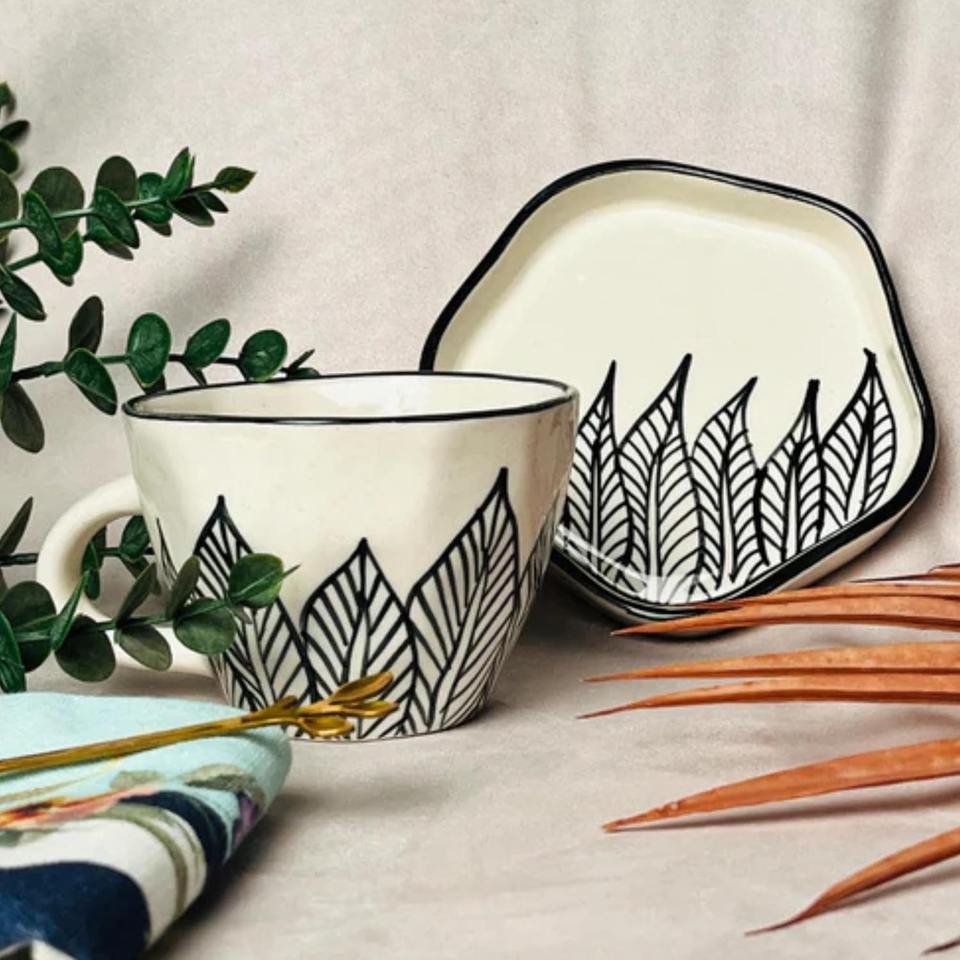 Export Quality Elegant Tranquil Leaves Ceramic Cup Pattern for Home Cafe and Gift Shop Use Available for Affordable Price