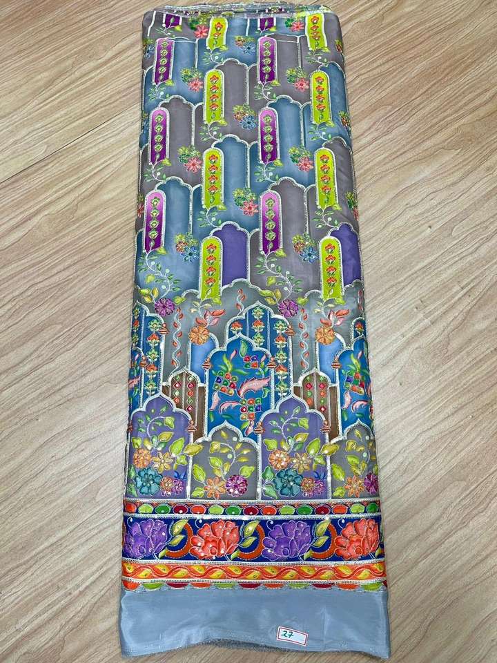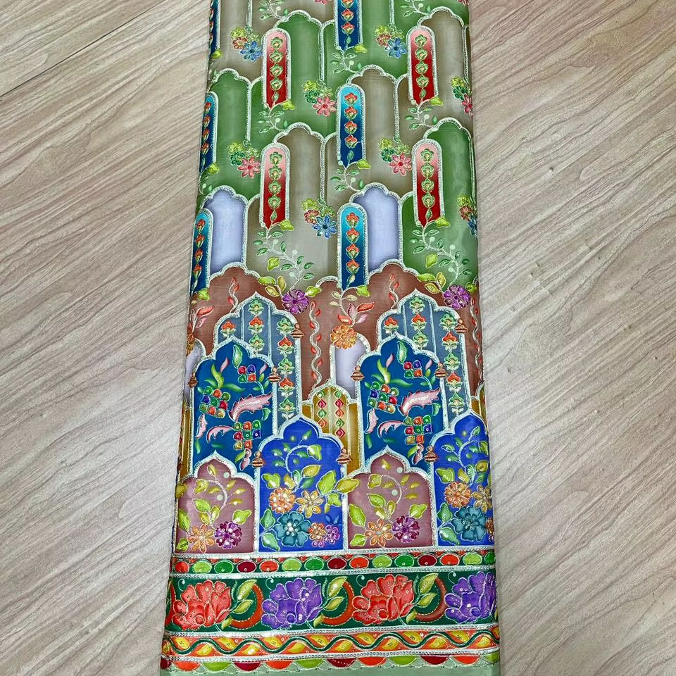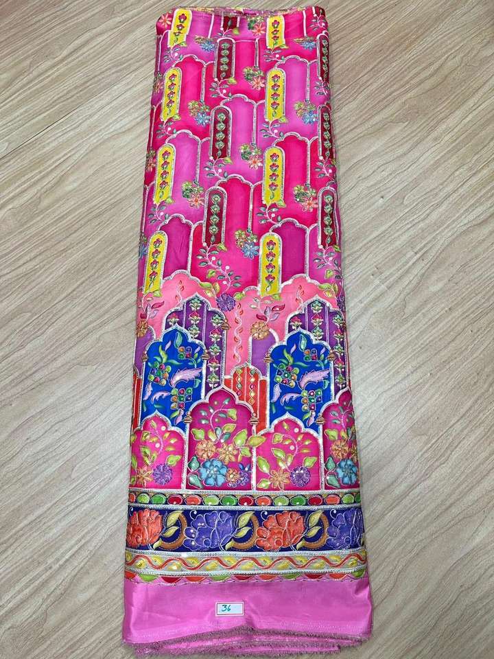Export Quality Girls' Woven Dyed Chinon Daman Fabric Heavily Embroidered Floral Design Eco-Friendly Breathable Medium Weight