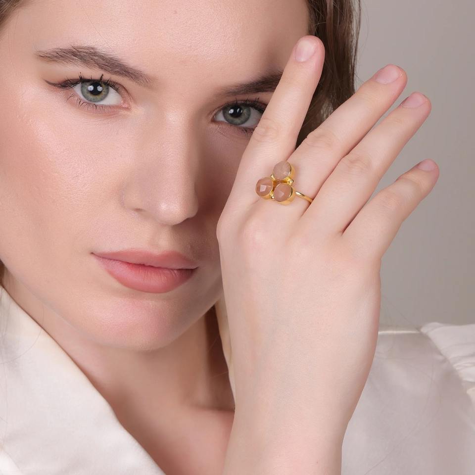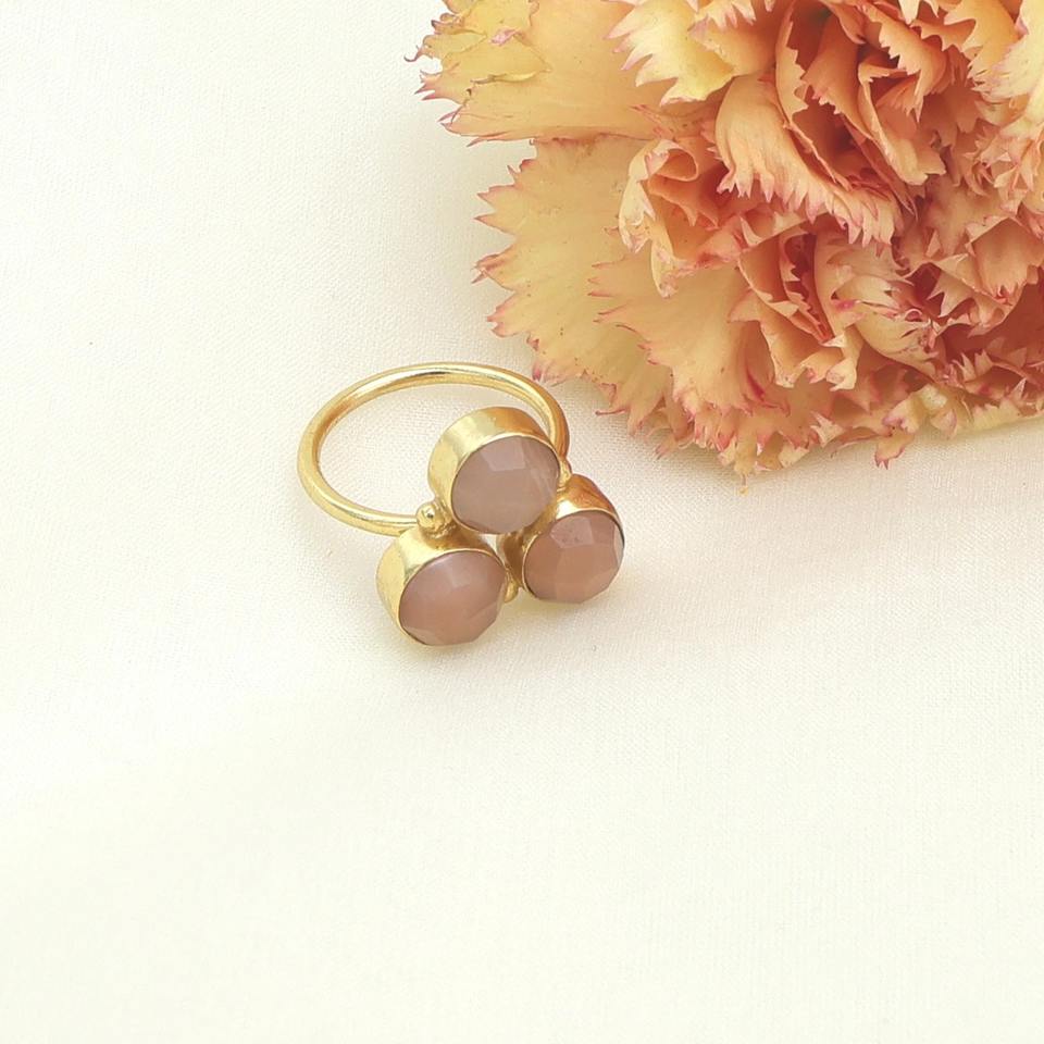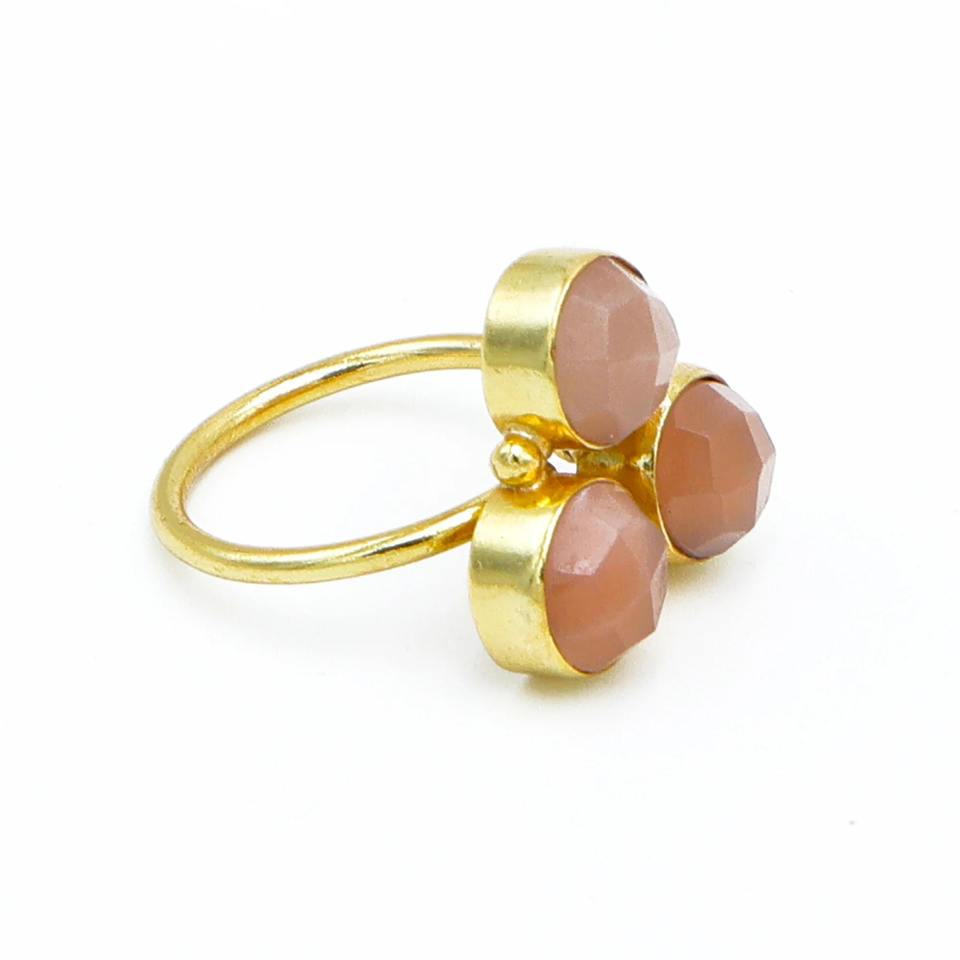 Export Quality Gold-Plated Peach Moonstone Round Ring Unique Statement Ring for Women and Girls from Indian Supplier