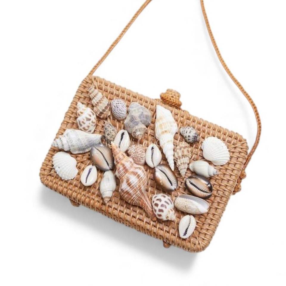Export Quality Rattan Shoulder Bag with Custom Mother of Pearl Design for Wholesale and Private Label Use