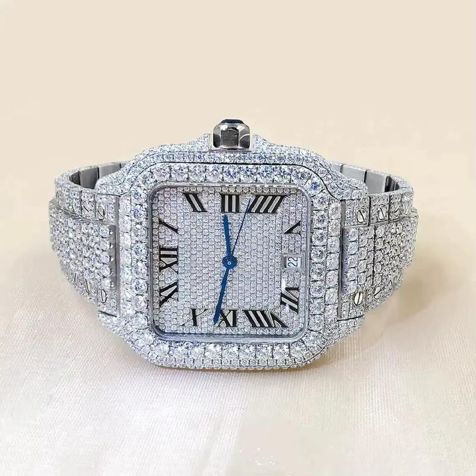 Export Quality White Iced Out Moissanite Diamond Watch for Men Stainless Steel Waterproof Hip Hop Style Available for Best Price