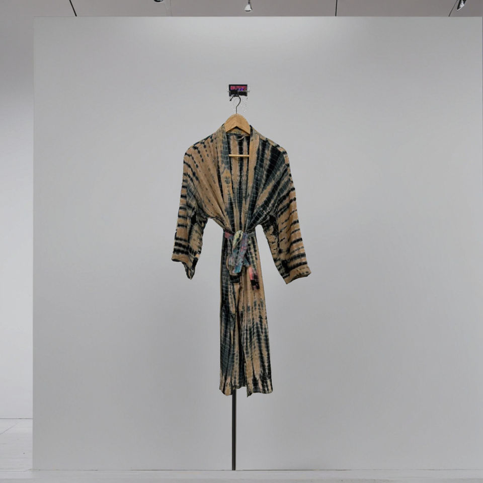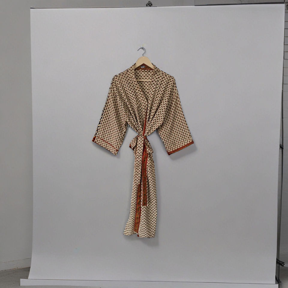 Export Quality Women 100% Silk Kimono Robe Dress Handmade Printed Long Dressing Gown Contrast Sleeves Soft Spa Resort Vacation