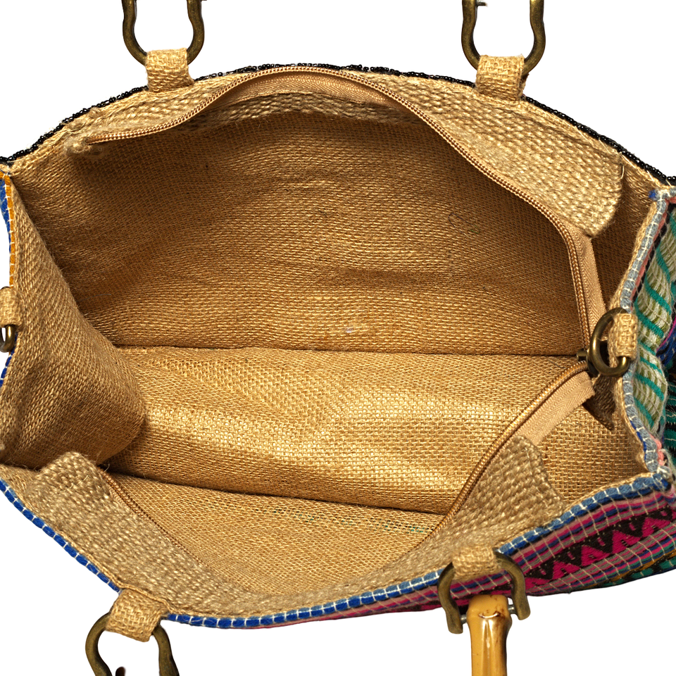 Export Selling New Design Tote Bag With Bamboo Handle Unique Bohemia Style Evil Eye Design Tote Bag In Wholesale Price