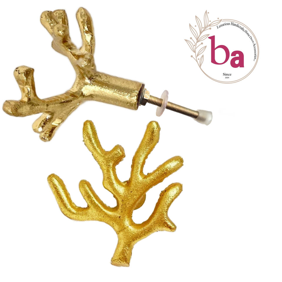 Export Quality Cast Iron Brass Finish Cabinet Knobs & Pulls Coral Branch Door & Drawer Handle for Kitchen & Bedroom Dresser Use