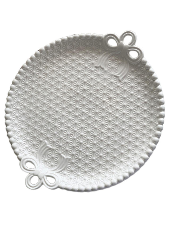 Export single bow relief bead princess plate, craft ceramic shallow flat plate, Western dining plate