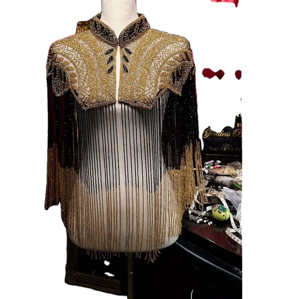 Exports ODM Handmade Sequin Design Adult Party Wrap with Long Fringes and Fancy Beaded Polyester for Club Wear