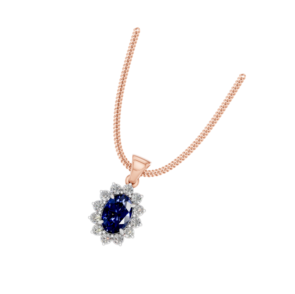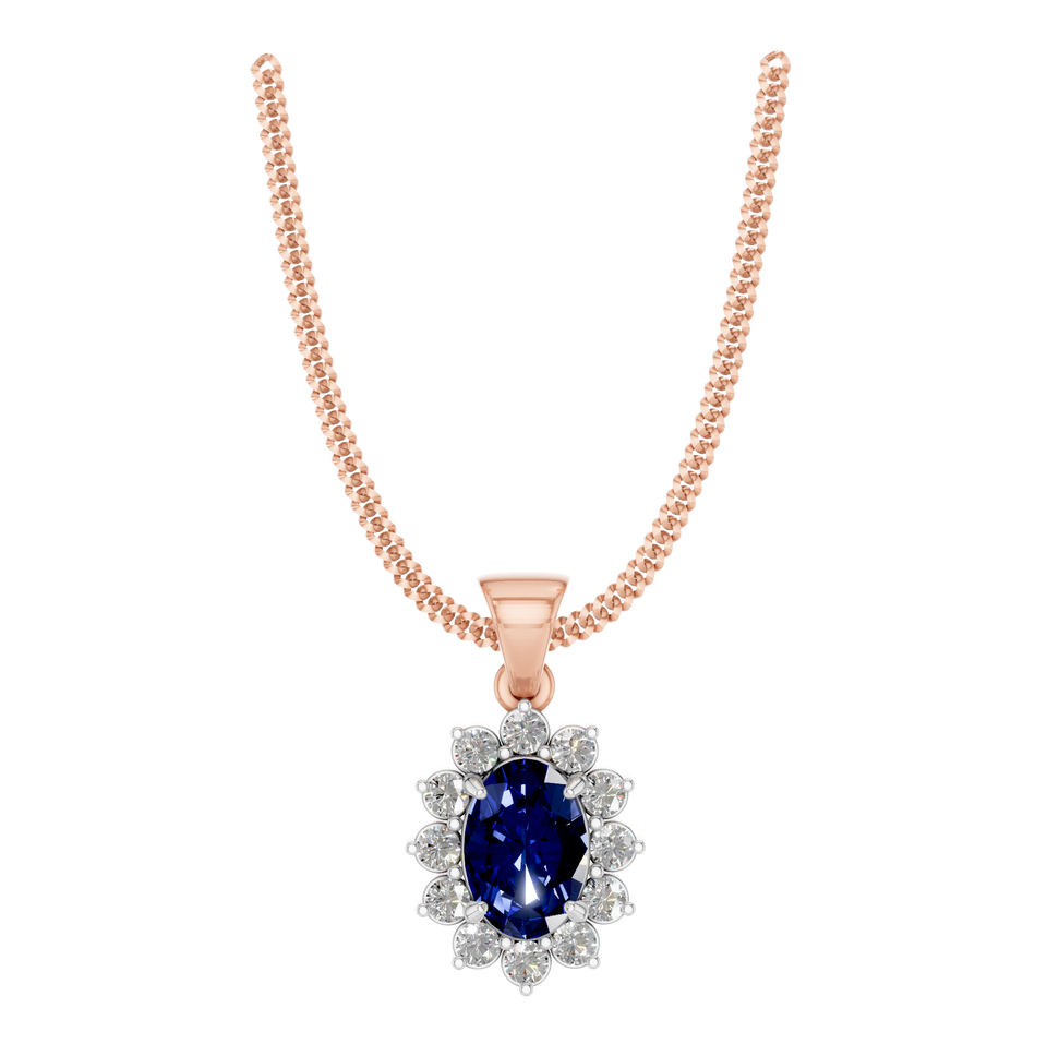 Exquisite 1 Carat Sapphire Solitaire Pendant in Rose Gold with Dazzling Diamond Halo Setting - a Timeless Elegant Design