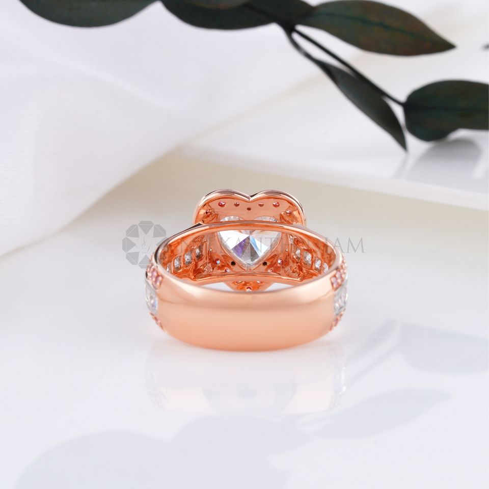 Exquisite 2.0Ct Heart IGI Lab Grown Diamond Halo Pink Engagement Ring in 10K 14K 18K Solid Gold Wedding Anniversary Gift