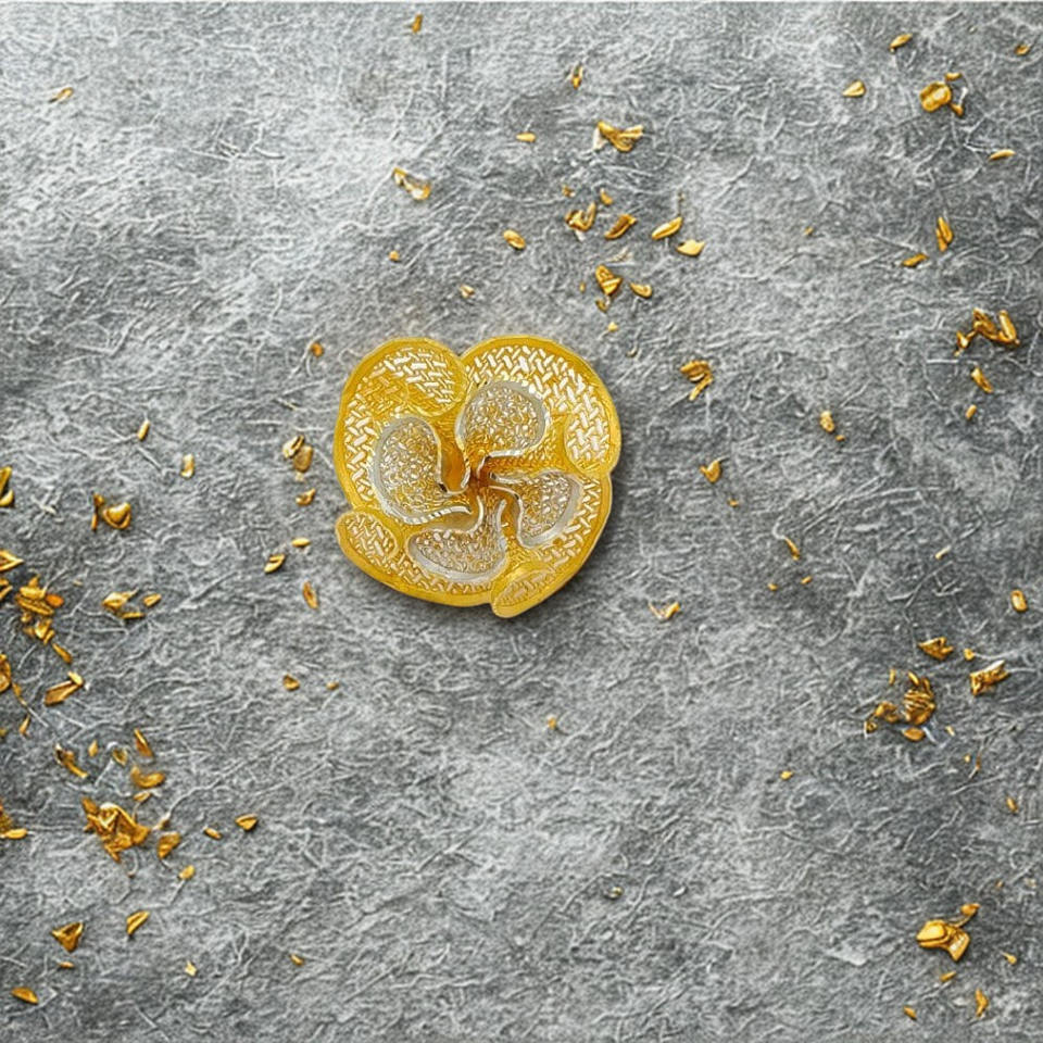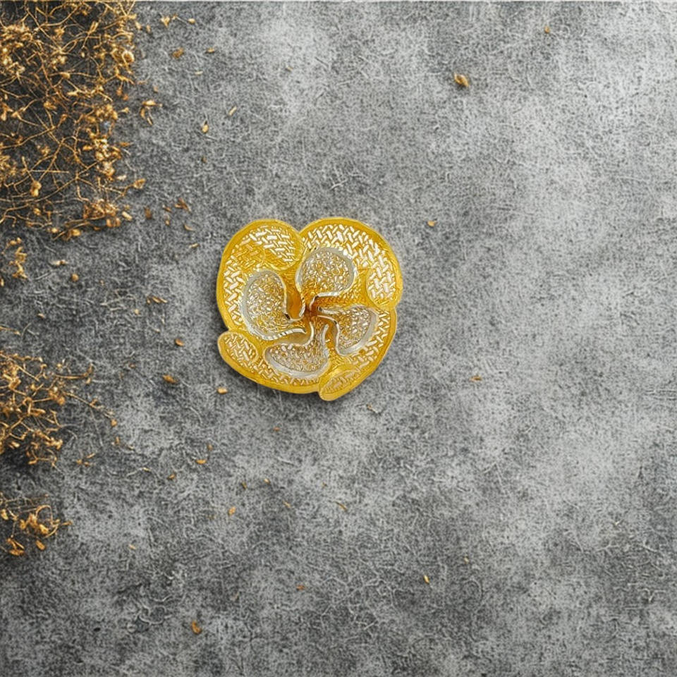Exquisite 22K Dual Tone Yellow and White Gold Floral Filigree Statement Ring for Women with Intricate Petal Mesh