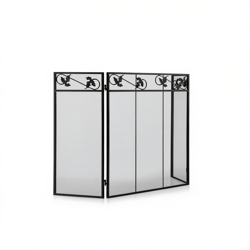 3 Panel Fireplace Screen Metal Mesh Classic Design Black Powder Coated for Wood Fireplaces
