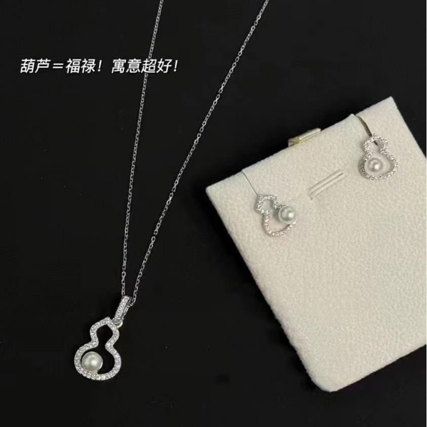 Exquisite 4k Gold Freshwater Pearl Necklace Set Advanced Dynamic Design Gourd Earnail Pendant Small Gourd New Dynamic Collection