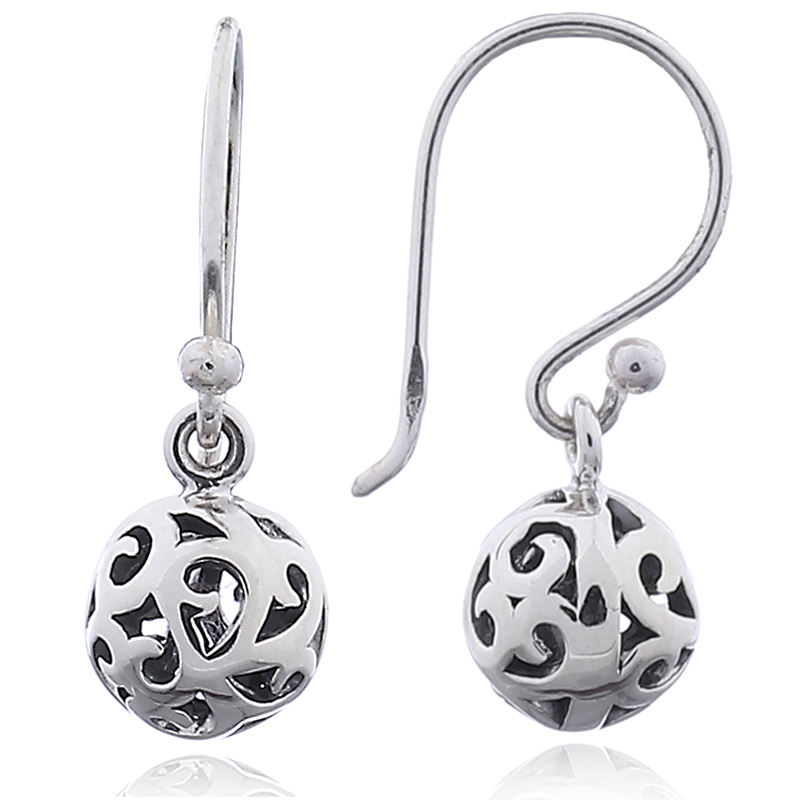 Exquisite Ajoure Filigree Open Ball Silver Dangler Earrings for Retailers
