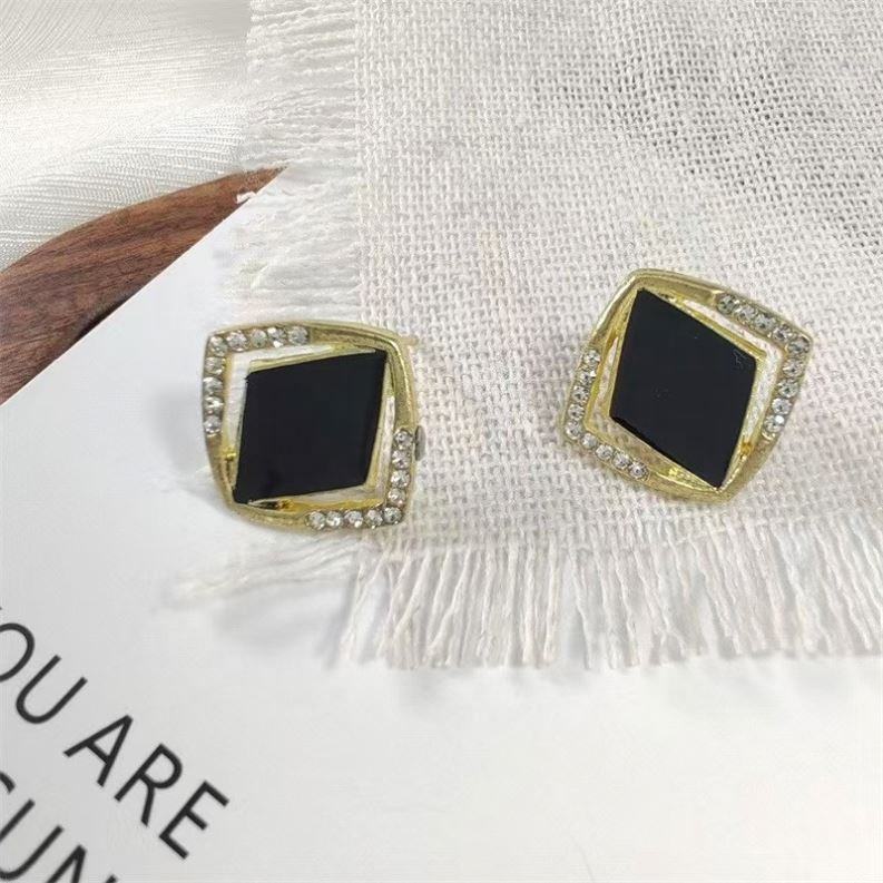 Exquisite Black Geometric Gold Plated Diamond-shaped Stud Earrings for Women Trendy Cold Style New Design High-end