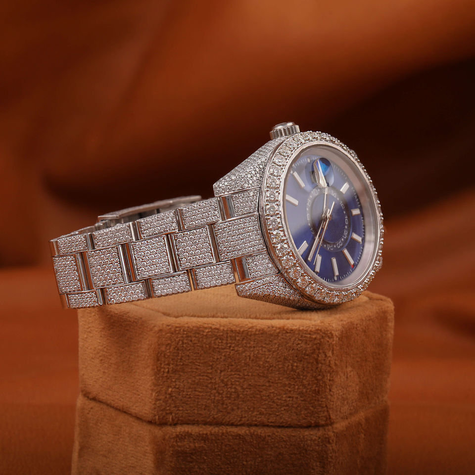 Exquisite Blue Dial Hip Hop Fully Iced Out Mechanical Watch Leb Grown Diamond Stainless Steel Luxurious Watches for Men