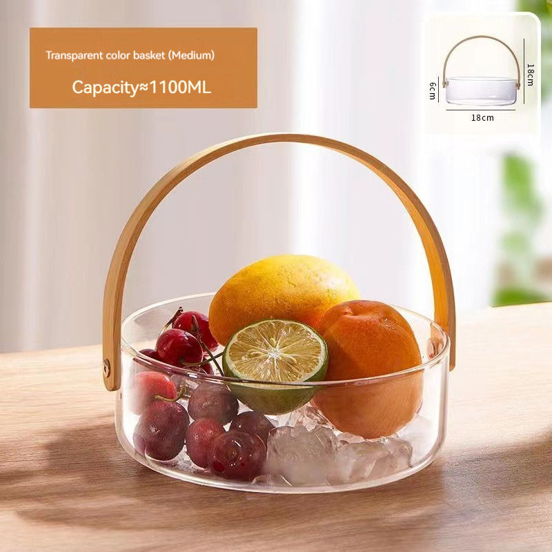 Exquisite Circle-Shaped Hanging Fruit Tray Ice Bucket Outdoor Picnic Vegetables Carrying Basket Tea Container Vegetable