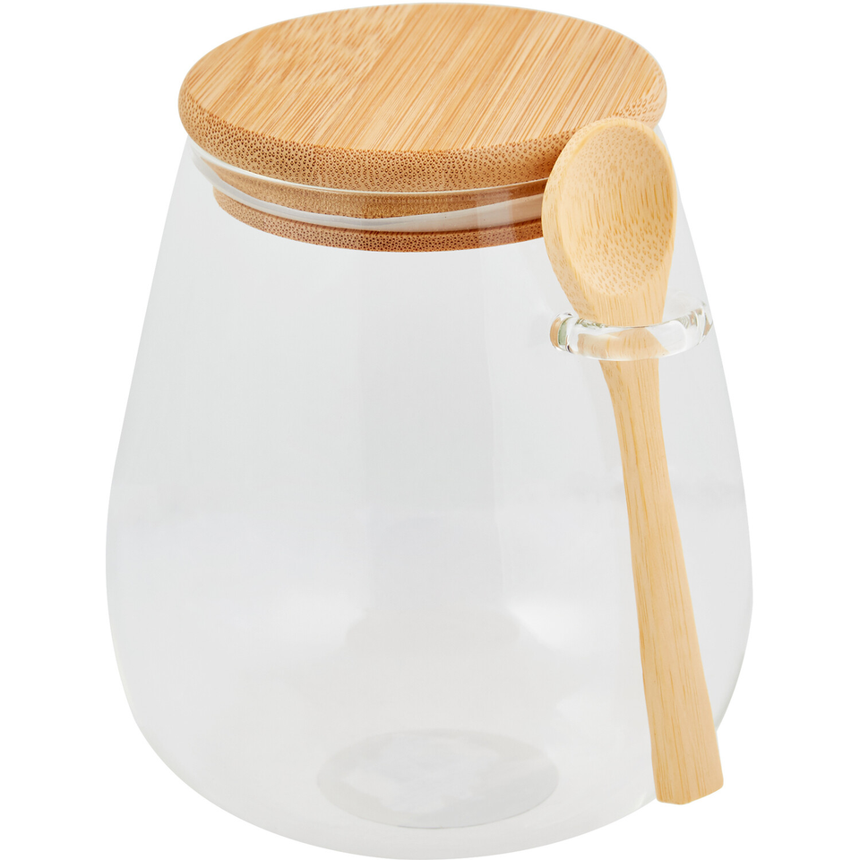 Exquisite Design Large Glass Jar Seasonings Keeper with Built-in Serving Spoon Acacia Wood Lid Salt Box Top Selling