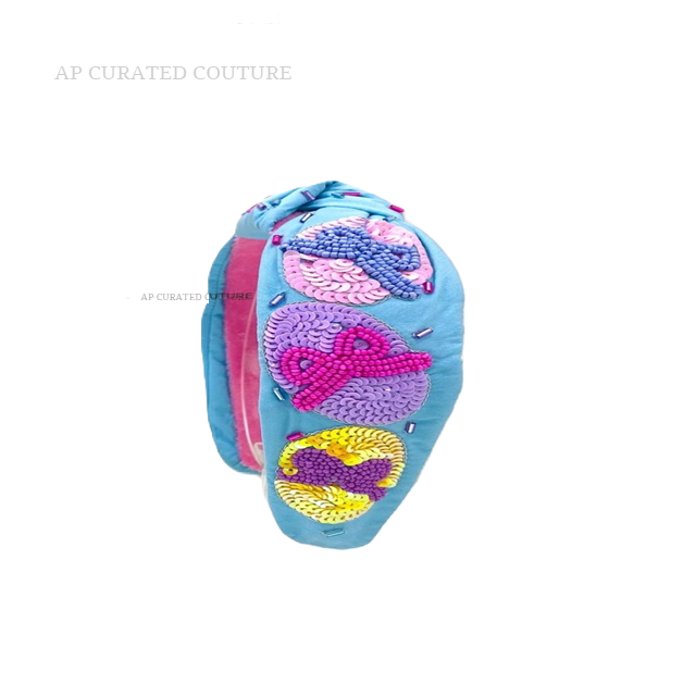 Elegant Easter Day Celebration Headbands for Women Pink White Beaded Top Knot Peeps Easter Eggs Mini Small Decorative Flower