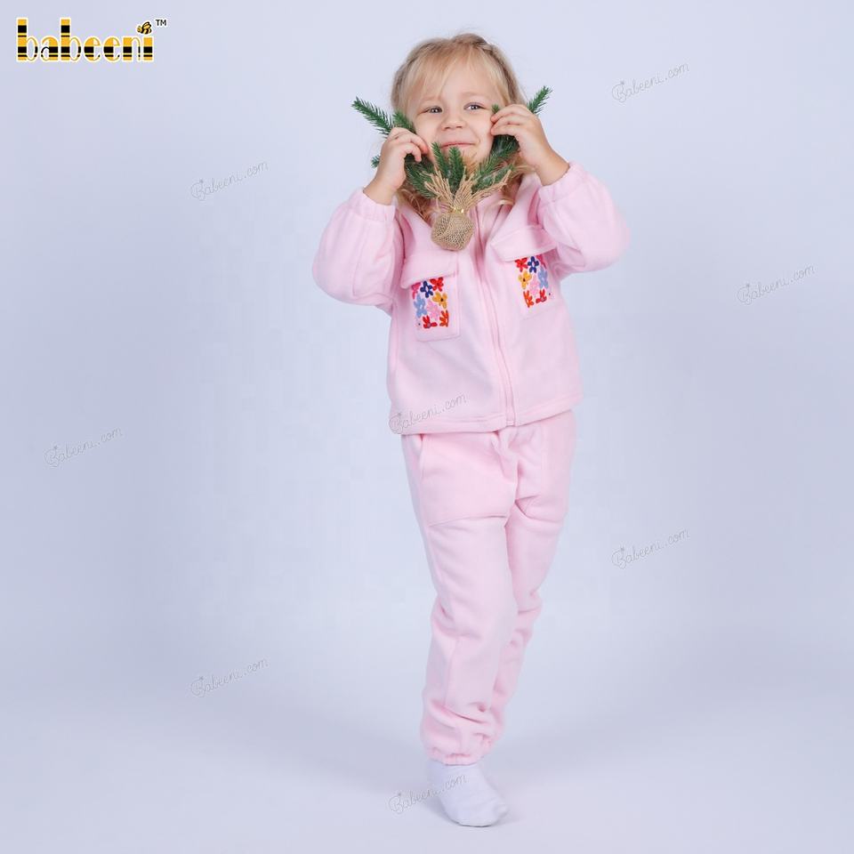Exquisite Girls Pink Character Pattern Casual Fleece Fabric ODM Wholesale Smocked Clothing Sets DR4082 Babeeni 100% Cotton