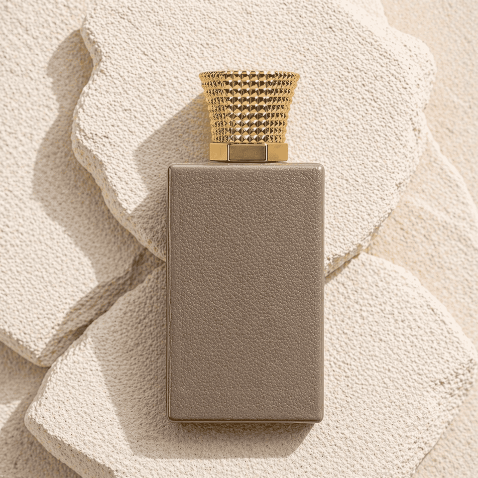 Exquisite Glass Embossed Leather Design Golden Round Spray Cap 30ml 50ml 100ml Perfume Bottle For Middle East Europe
