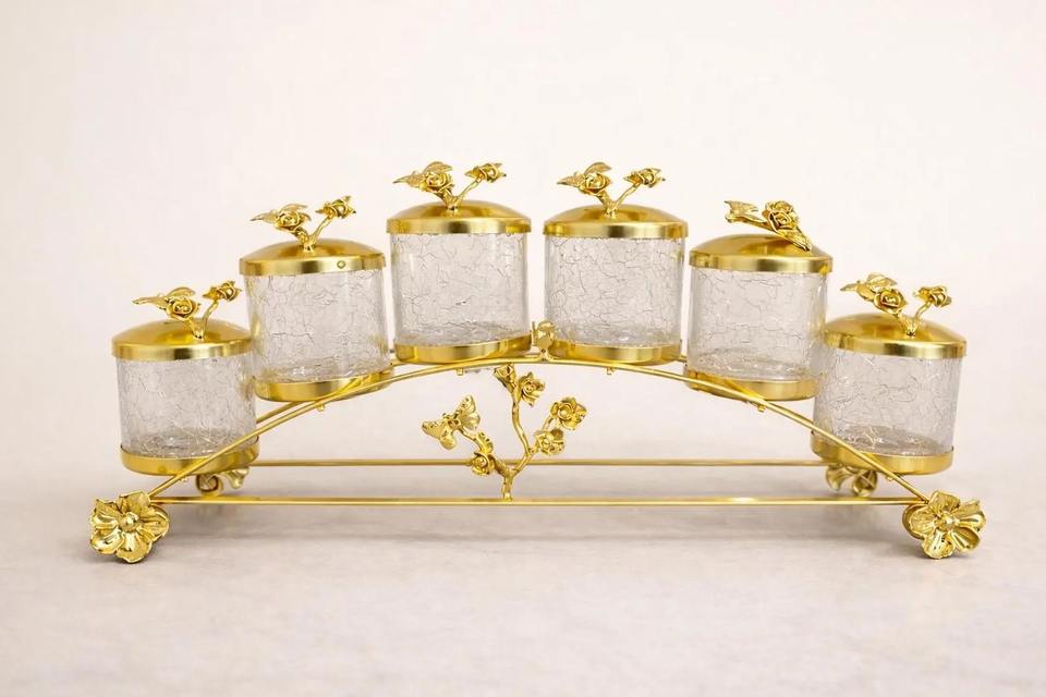 Exquisite Gold Glass Container For Kitchen Countertop Storage And Gifting Luxury Metal Jar With Lid Elegant Home Decor Piece