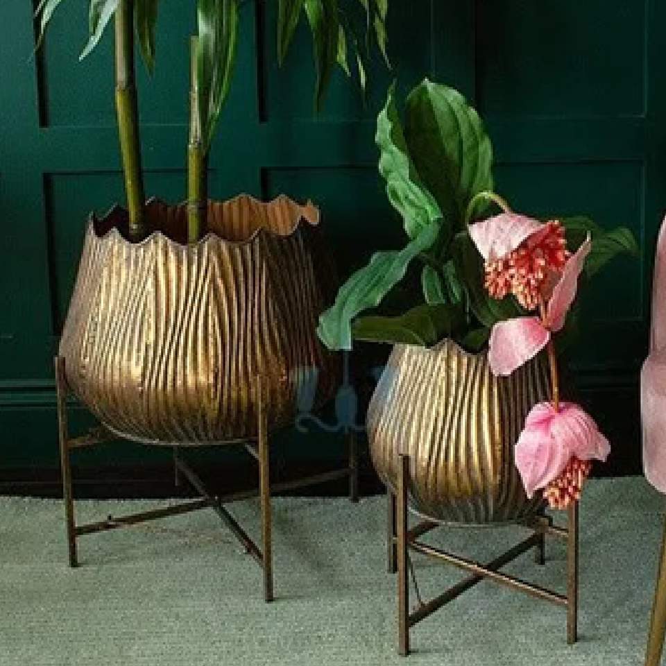 Exquisite Gold Shine Dual Metal Plant Pot With Stand Set of 2 Planter Iron Planter Small and Large Decorative Pots at Wholesales