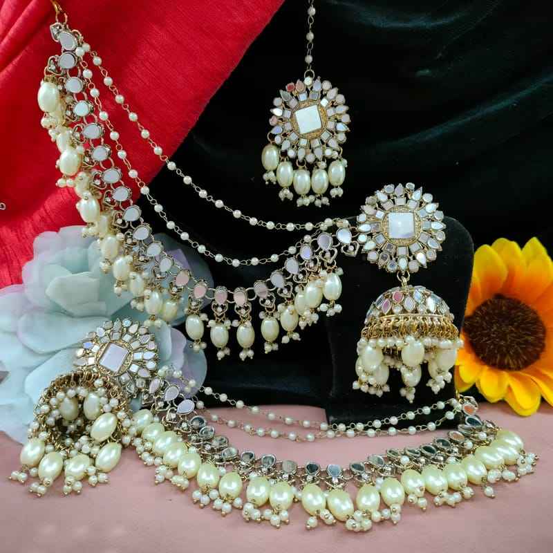 Exquisite Handcrafted Kundan and Pearl Bridal Jewelry Set with Traditional Maang Tikka and Jhumka Earrings