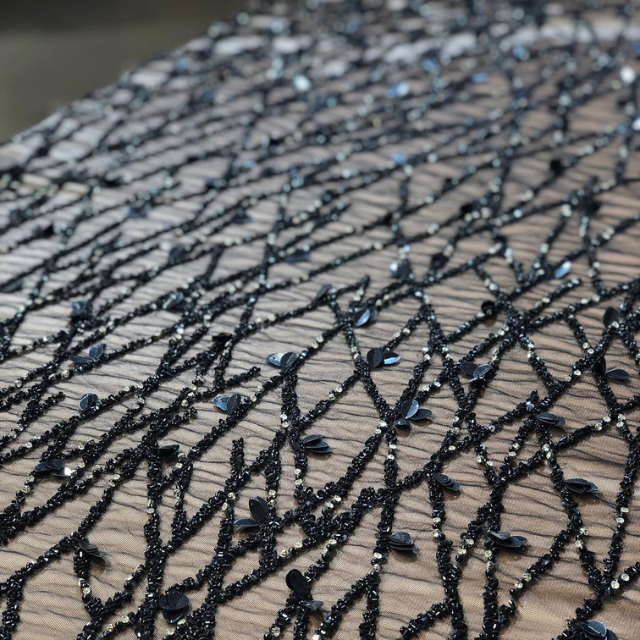 Exquisite Handmade Organza Lace Fabric designed with Heavy Bead Embroidery for Fashion Garments