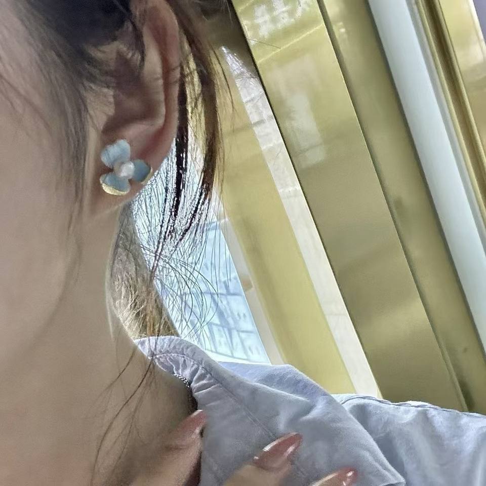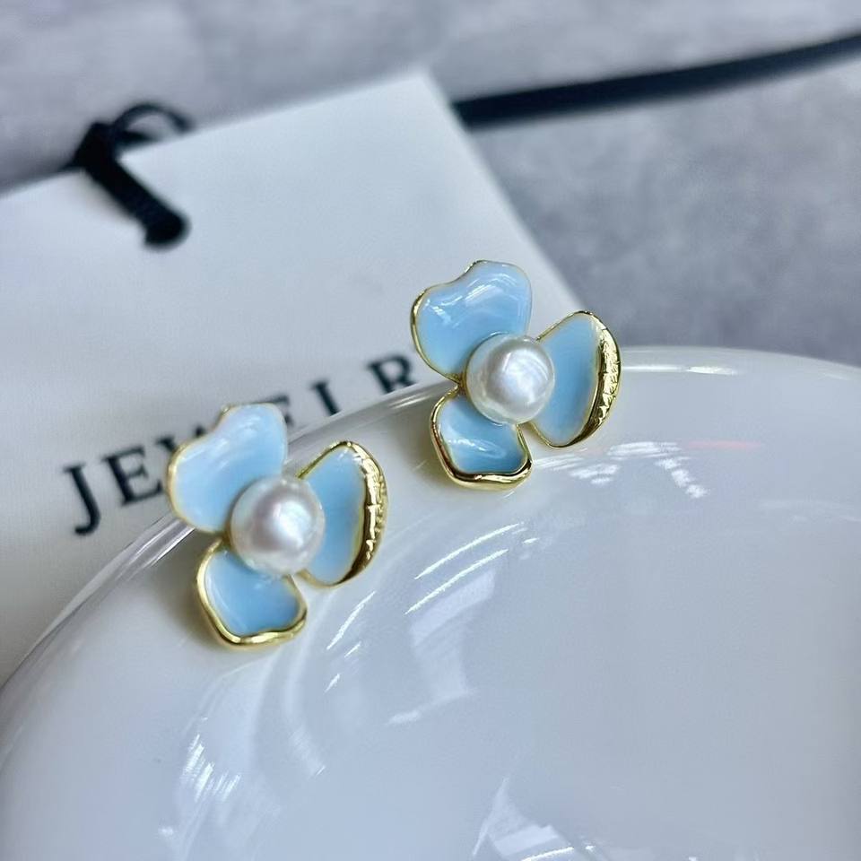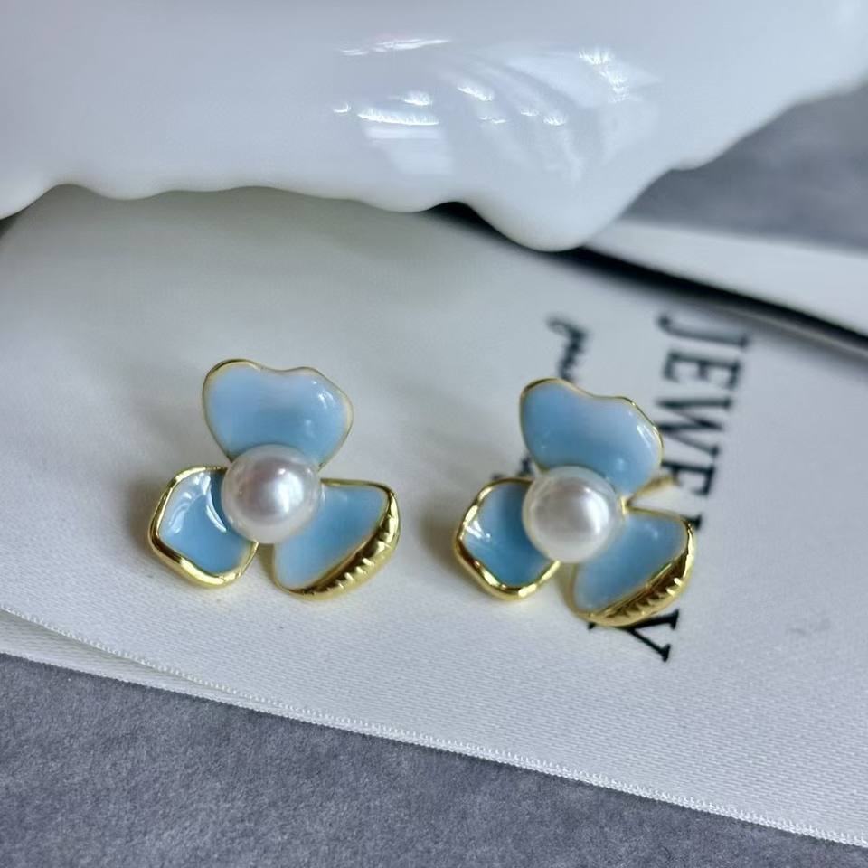Exquisite High-End Freshwater Pearl Earrings Blue Sterling Silver Elegant Flower Designs Natural Elegant Blue Floral Explosion