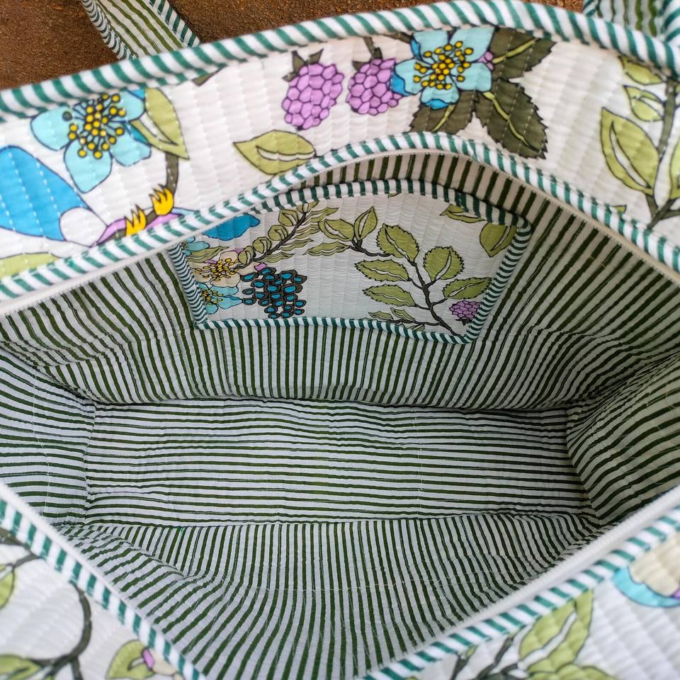 High Quality Hand-Block Printed Quilted Cotton Tote Bag Elegant Zipper Closure Versatile Handcrafted Boho Shoulder Bag