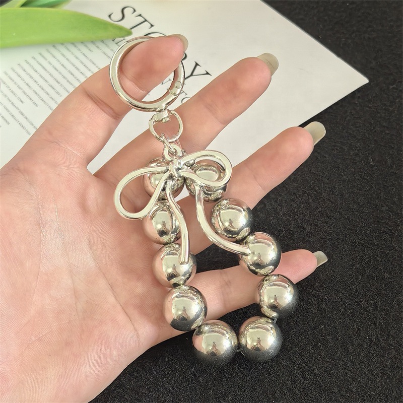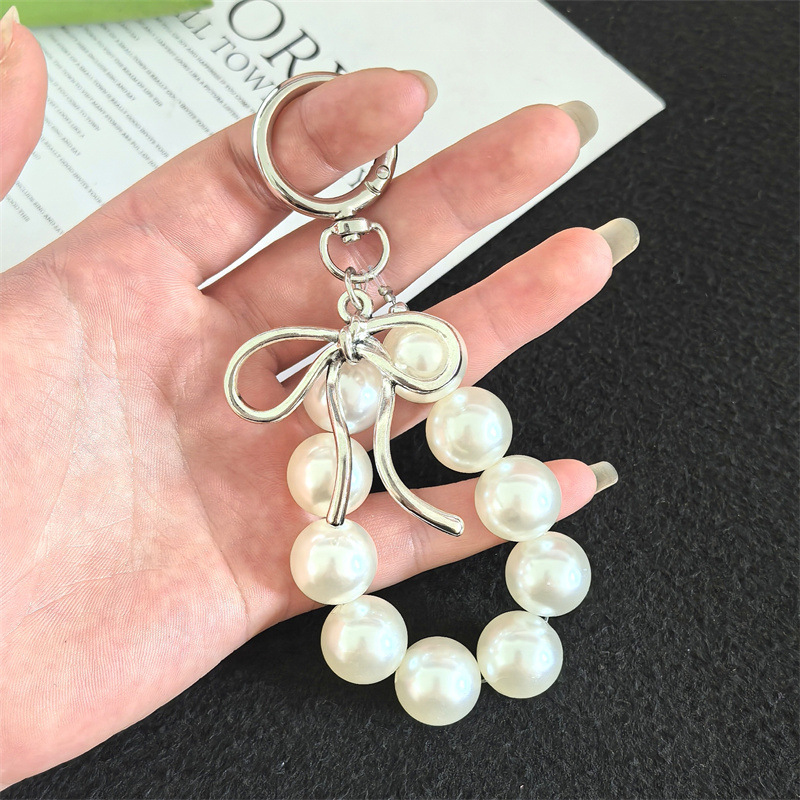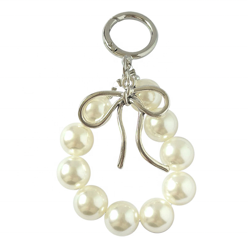 Exquisite Korean Style Beads Bowknot Keychain Phone Accessories Imitation Pearl Bag Pendant Accessories Metal Bead Key Chain New