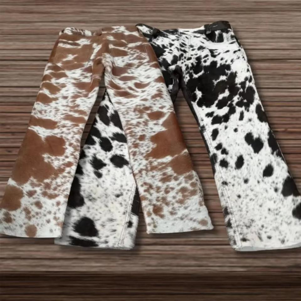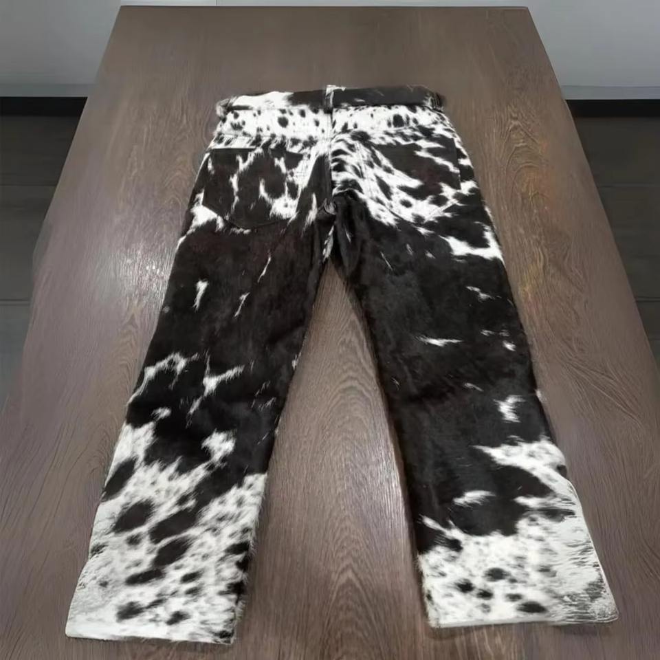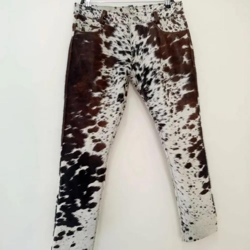 Exquisite Luxury Genuine Cow Hair Leather Pant Men Women Western Cowhide Fur Trousers Brown And White Spotted Real Hair On