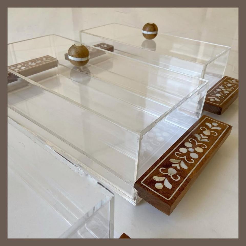 Exquisite Mother of Pearl Inlay Lid with Wooden Cover and Acrylic Base Eid and Ramadan Gift Box Set Handcrafted in India