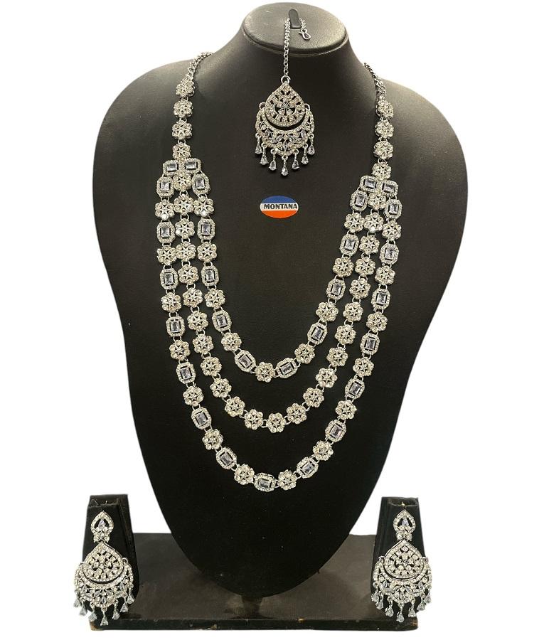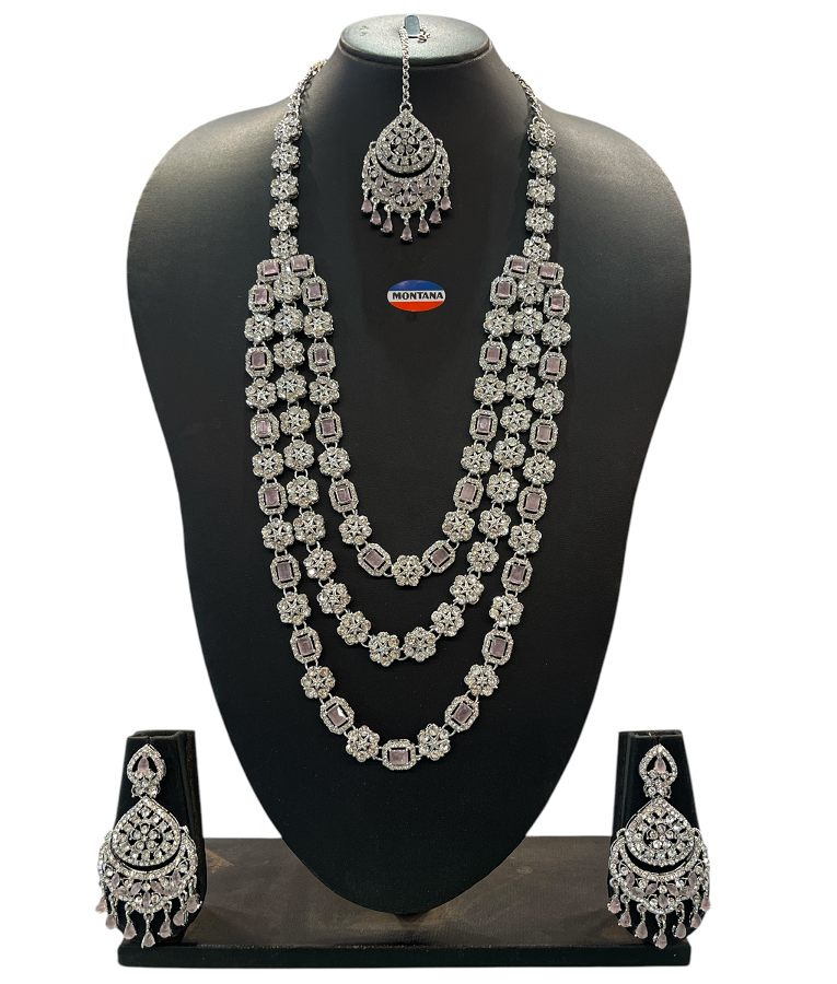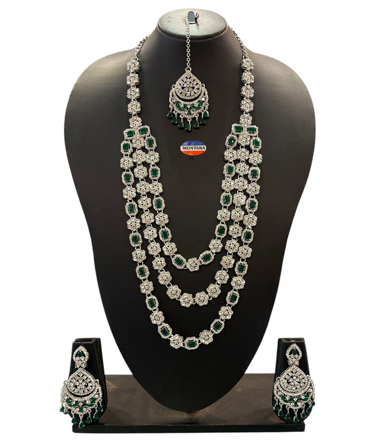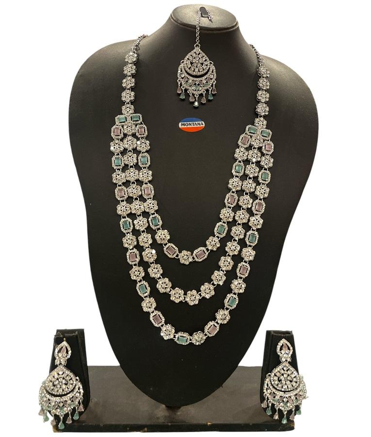 Exquisite Multilayer AD Necklace Set for Women Glamorous Jewelry for Lehenga Saree and Traditional Dresses