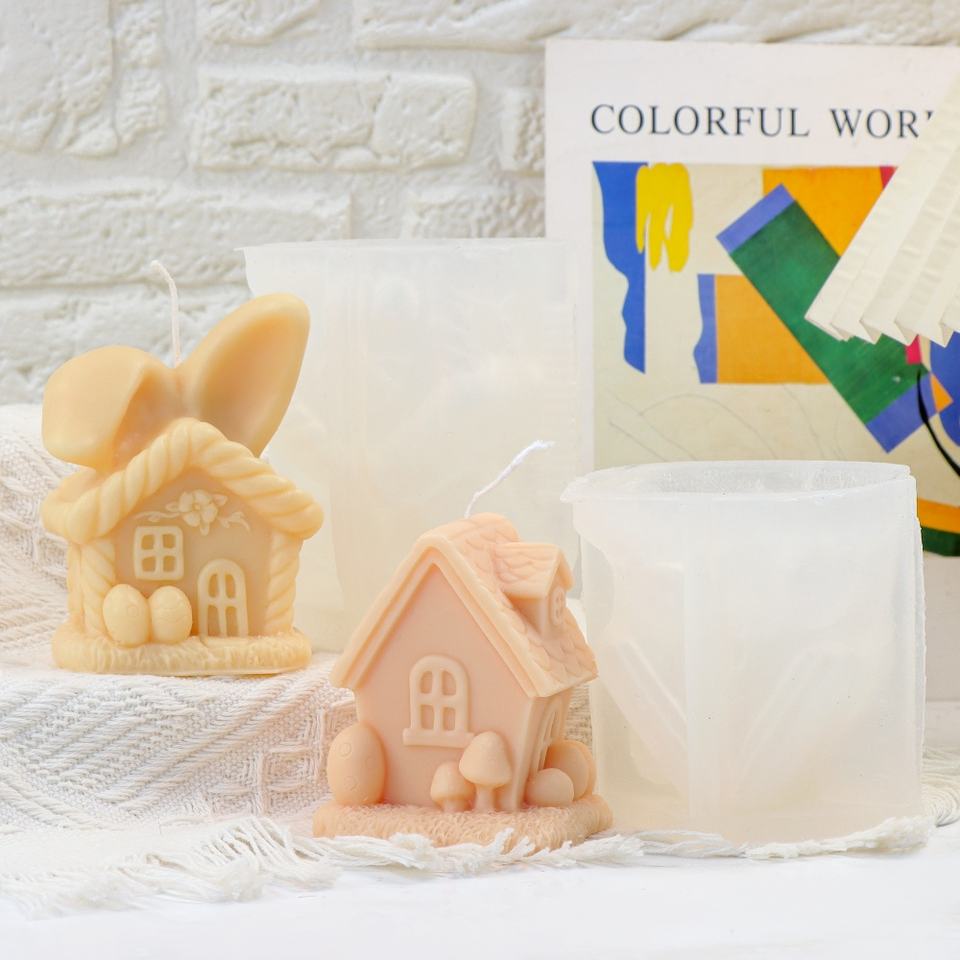Exquisite Mushroom Egg House Silicone Candle Mold Rabbit Flower House Resin Soap Mold for Candle Making Easter Art Decoration
