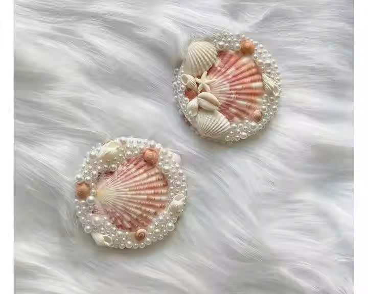 Exquisite Ocean Whispers Compact Mirror Handmade Mermaid Gift with Shells and Lace from Vietnam