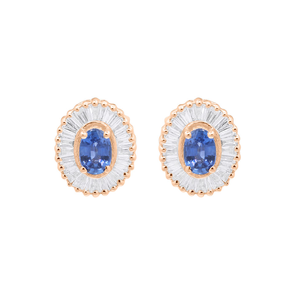 Wholesale 18K Yellow Gold Plated Exquisite Blue Sapphire Gemstone Vintage Stud Earrings Luxurious for Women's Wedding Party