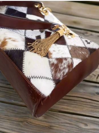 Handmade Exquisite Fashion Patchwork Genuine Leather Crossbody Tote Bag Women's Western-Style Cowhide Bucket Purse Tooled