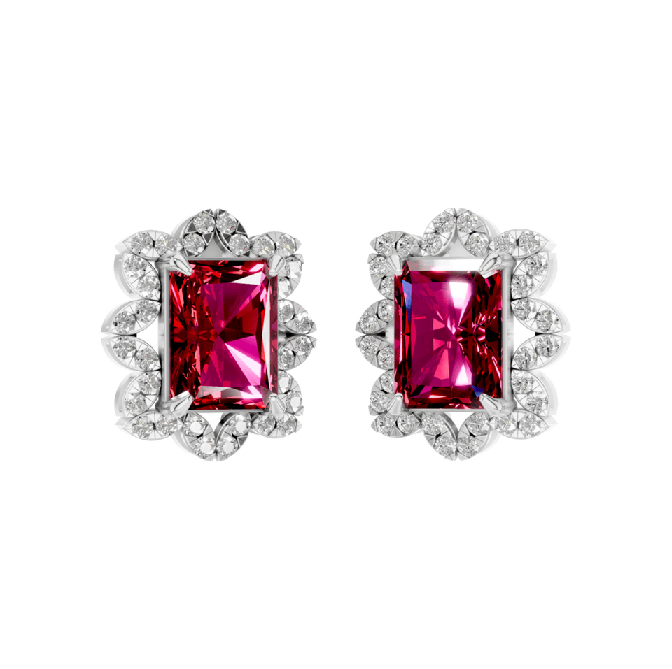 Style:Ruby Gemstone Stud Earring with Natural Diamond Halo