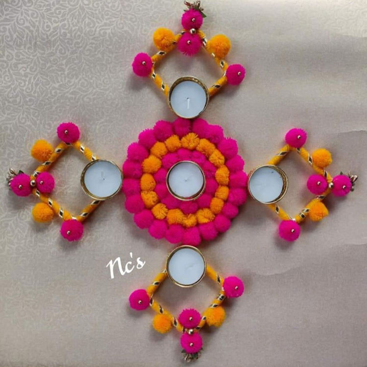 Exquisite Rangoli Candle Holder Pom Pom Unique Traditional Style Decor for Festive Diwali Graduation for Father's Day