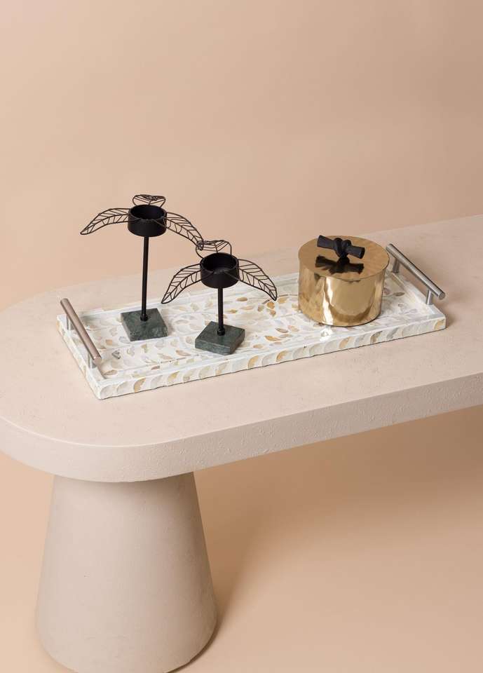 Exquisite Rectangular Mother Of Pearl Inlay Serving Tray With Handles Handmade Capiz Tray For Serving Food Or Home Decoration