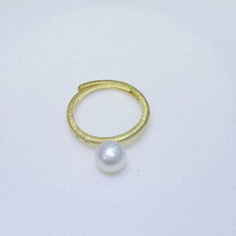 Exquisite Retro Style Starlight Ring Natural Freshwater 6.5-7mm Round Pearl Inlay Almost Flawless Aurora Trendy Number Shape