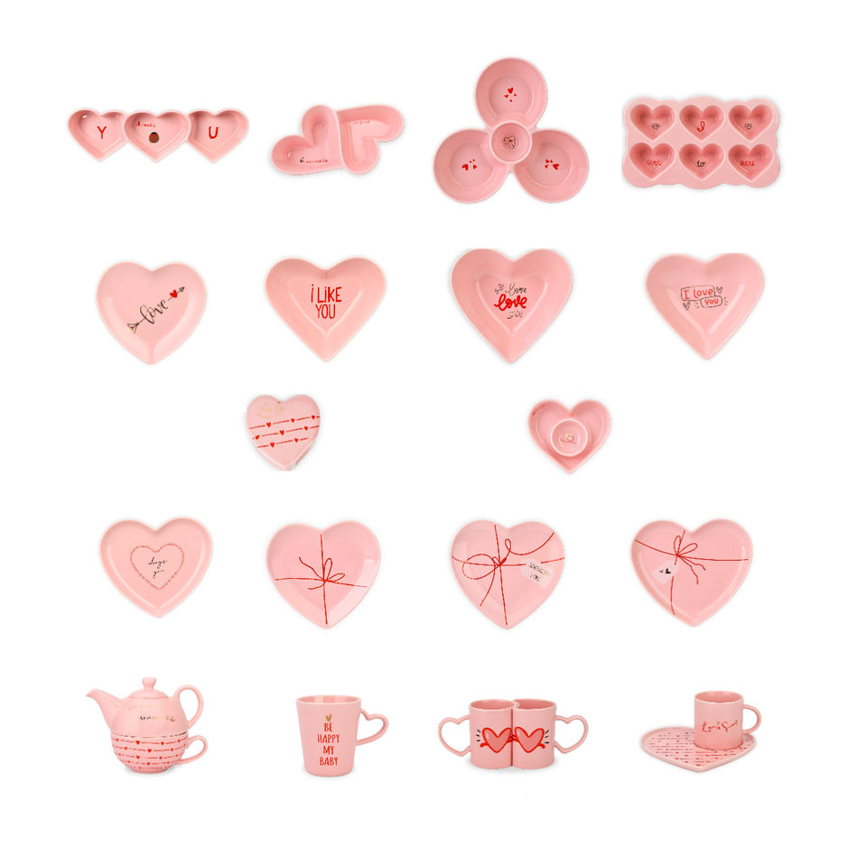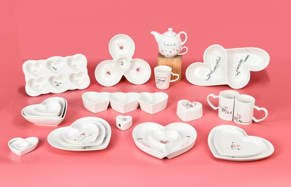 Exquisite Romantic Wedding Gift Valentines Design Square Plate Bone China Dinner Set for Housewarming Bride Ceramic Tableware