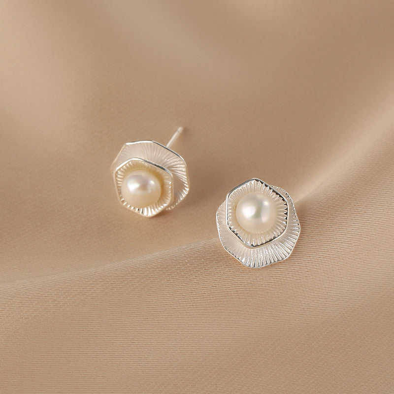 Exquisite S925 Sterling Silver Stud Earrings with Natural Pearls