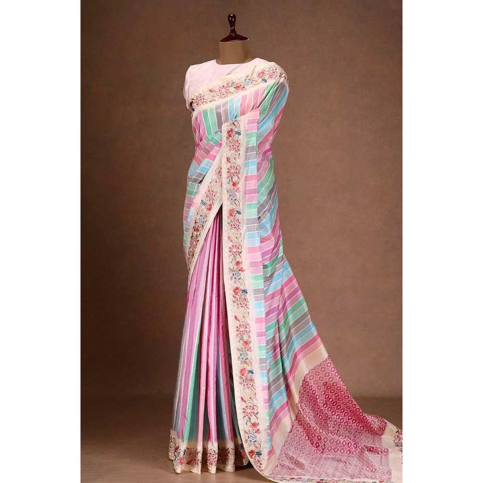 Exquisite Sai Creation Pink Digital Printed Saree with Embroidery Threads Work Beautiful Indian & Pakistani Clothing Size m