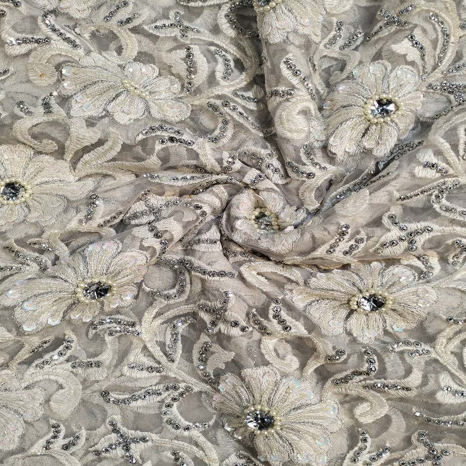 Exquisite Sequin Beaded Floral Embroidery Design for Wedding Party Dress Gown Lace Customized Wholesale Bridal Net Lace Fabric